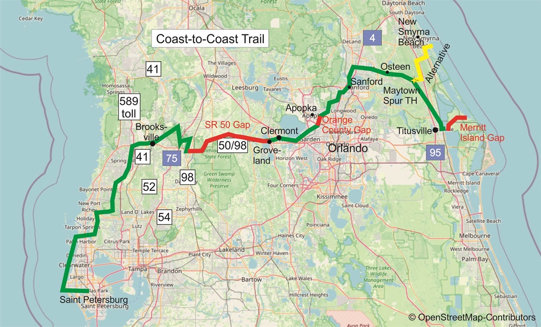 Since so many people are constantly asking about this route and complete and current information is not so easy to find (I checked the internet for weeks), I decided to write a second book for Central Florida – West including navigation for the C2C. It contains maps for each stage and for the gaps as well as GPS points.